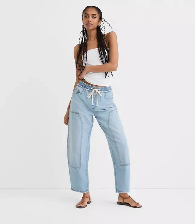 Rivete Utility High Rise Barrel Jeans Light Wash Indigo