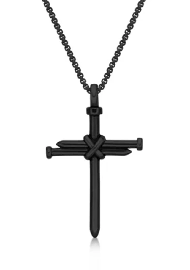 1/10 ct. t.w. Cubic Zirconia Stainless Etched Cross Pendant with BIP and 24 Inch BIP Round Box Chain