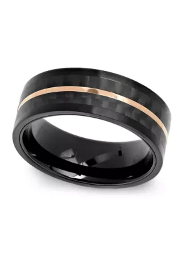 Black Sapphire Inlay Brushed Low Dome Comfort-Fit Engravable Wedding Band in Tungsten with Brown IP (1 Line)