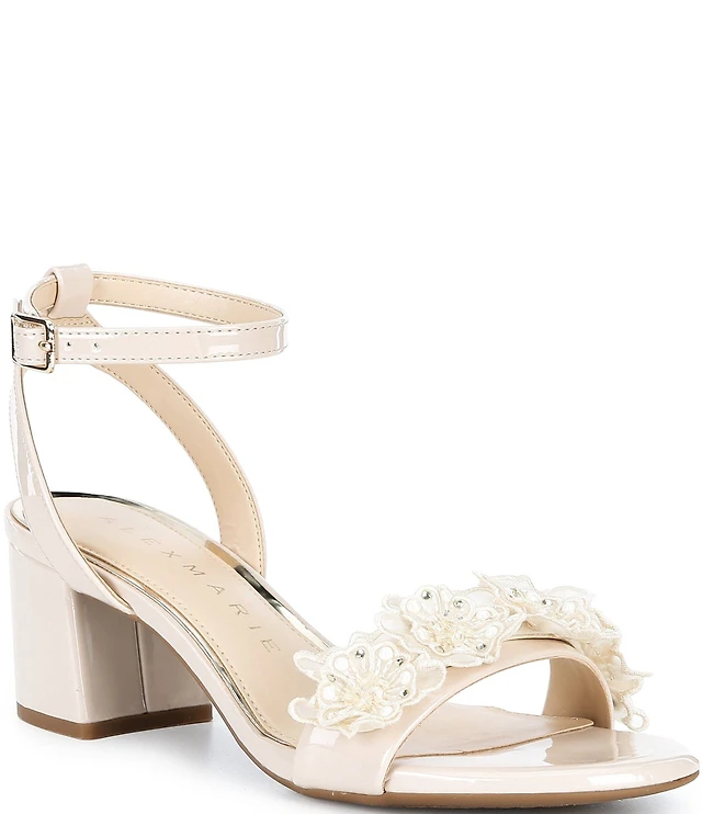 Alex Marie Johanna Floral Brocade Pearl Embellished Block Heel Dress Sandals