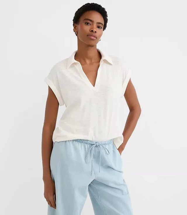 Petite Collared Split Neck Top