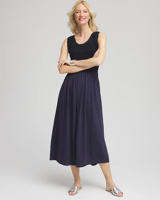 Stitch-Detail Tie-Waist Jersey Midi Dress