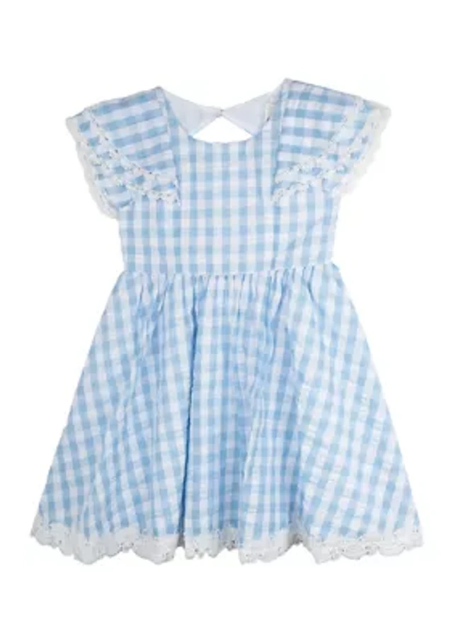 Toddler Girls Printed Chambray Dress with Puff Sleeves