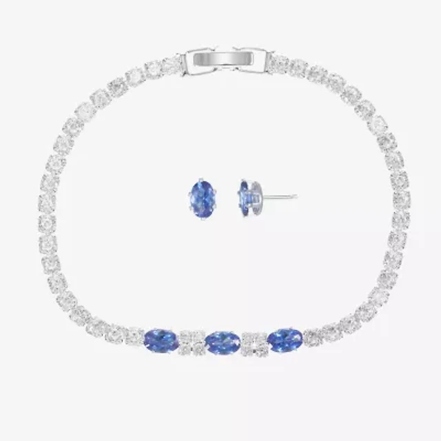 Sparkle Allure Light Up Box Womens Blue Cubic Zirconia Pure Silver Over Brass Oval 2-pc. Jewelry Set