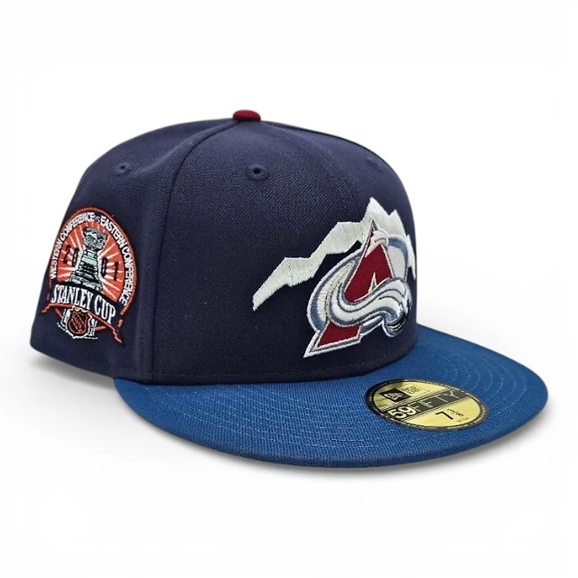 Colorado Avalanche Light Navy Seashore Blue 2T Leon the Lab 2001 Stanley Cup Patch Grey UV New Era 59FIFTY Fitted Hat