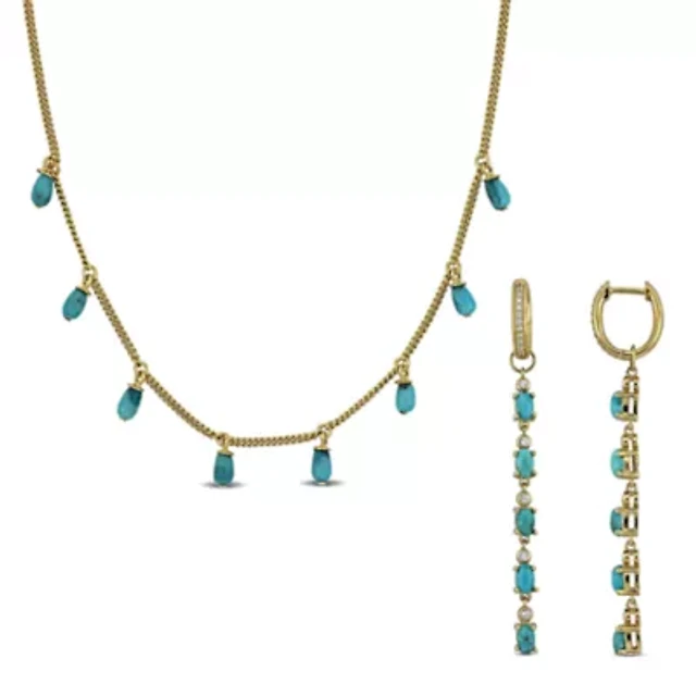 2-Piece Set of Composite Light Blue Turquoise & Created White Sapphire Station Necklace & Earrings in Yellow Plated Sterling Silver - 18 in + 2 ext.