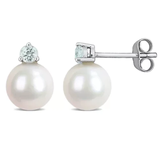 10K Gold 5mm Round Aquamarine Stud Earrings