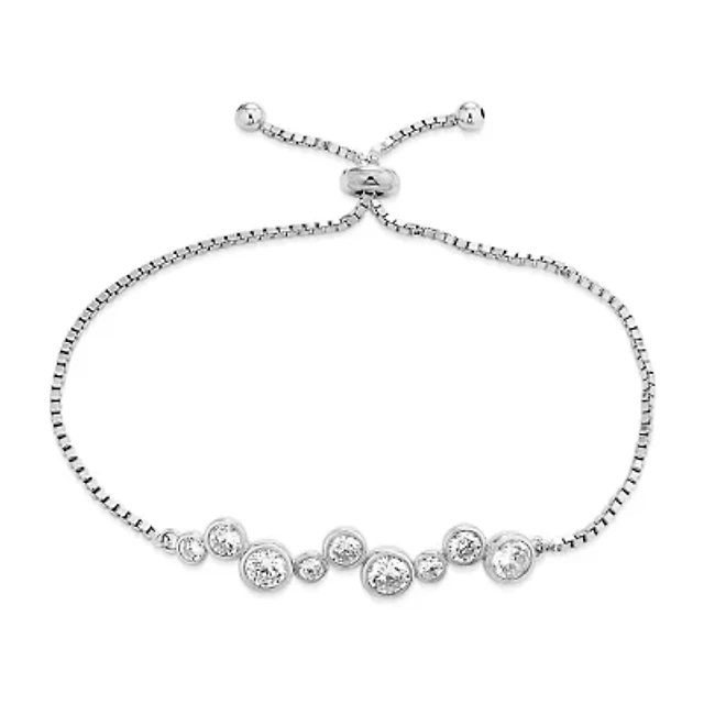 Womens Lab Created White Sapphire Sterling Silver Moon Bolo Bracelet