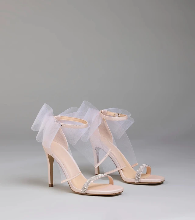 Tied With Bow Rhinestone Block Heels