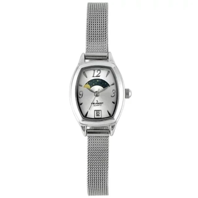 Peugeot Women's Silver Dial Sun Moon Watch 30x20mm Calendar Mesh Bracelet