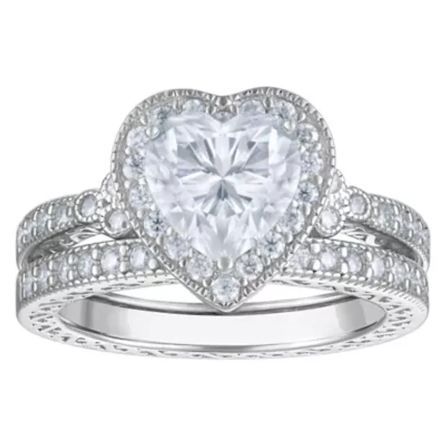 Ladies 18k white gold plated brass and simulated heart shaped twisted ring
