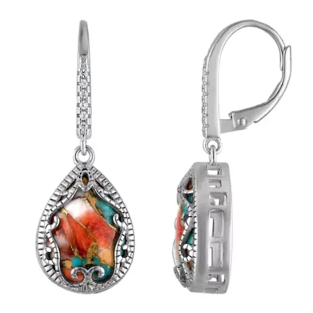 Sterling Silver Blue Oyster Turquoise Leverback Earring