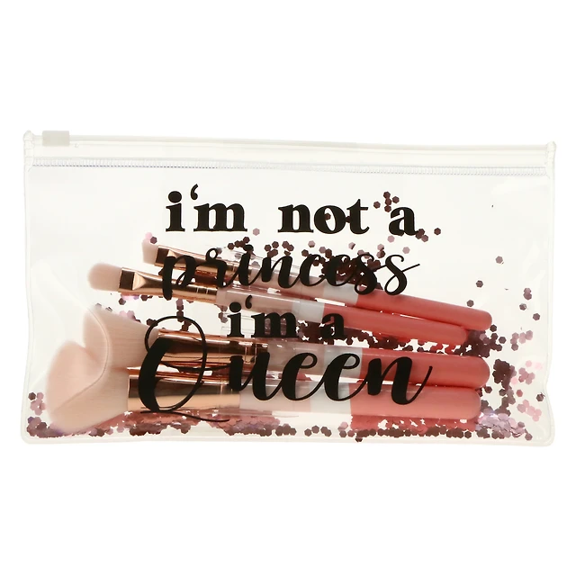 4-Piece Pink Glitter Makeup Brush Set & Travel Pouch