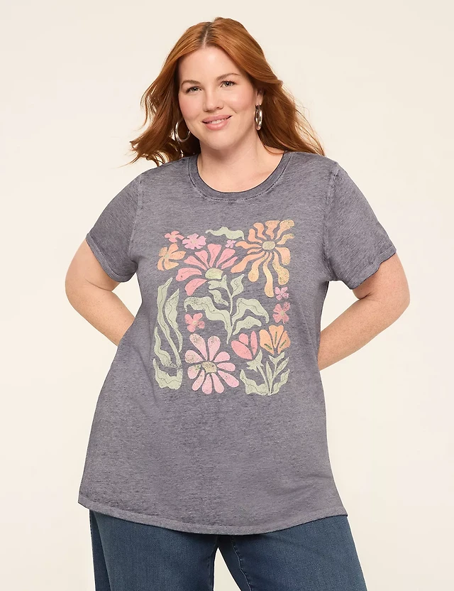 Scoop-Neck Short-Sleeve Heart Graphic Tee