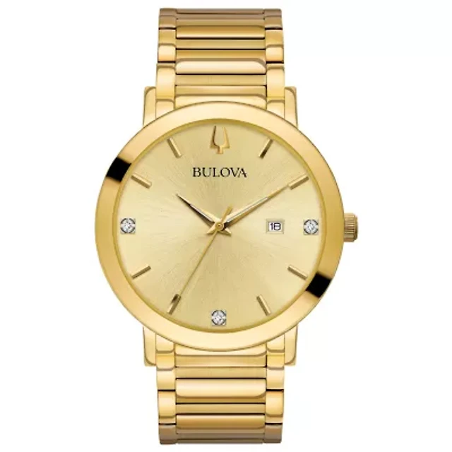 Bulova Futuro Mens Diamond Accent Gold Tone Stainless Steel Bracelet Watch 97d115