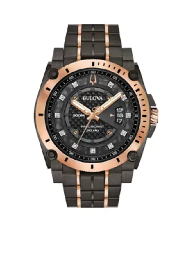 Men's Gray and Rose Gold-Tone Stainless Steel Precisionist Champlain Diamond-Accent Bracelet Watch 46.5mm