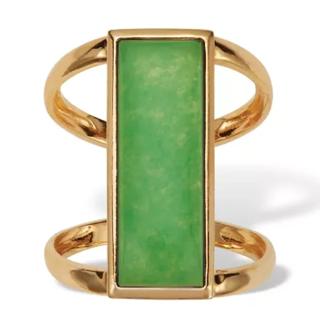Emerald Cut Genuine Jade 18k Gold-Plated Sterling Silver Bezel Set Cabochon Ring