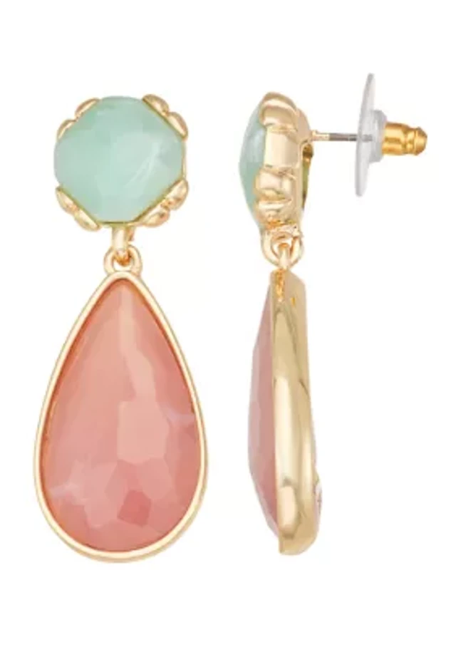 Rose Gold Half Diamante Rectangular Stone Earrings