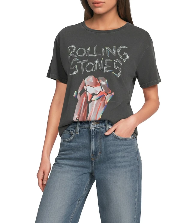 Lucky Brand Knit Rolling Stones Graphic Crew Neck Short Sleeve Tee
