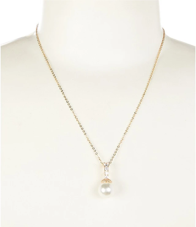 Cezanne CZ Stone Bail Pearl Drop Delicate Chain Short Pendant Necklace