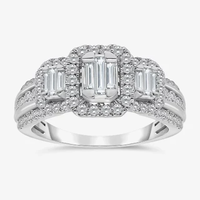 Love Lives Forever (I / I1) Womens 1 CT. T.W. Lab Grown White Diamond 10K Gold Side Stone 3-Stone Engagement Ring