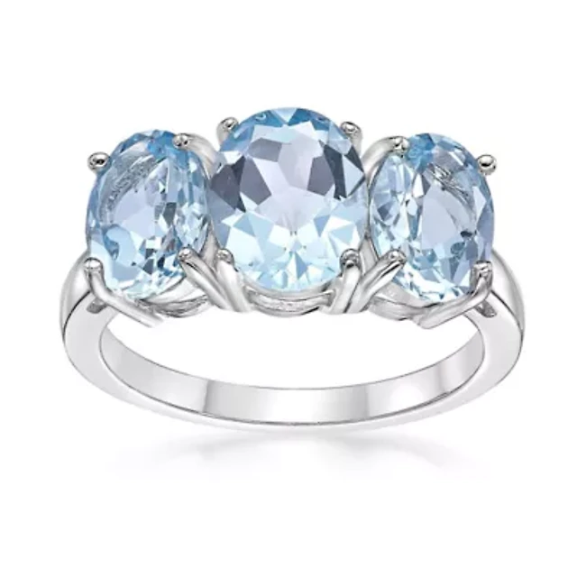 5 1/2 ct. t.w. Blue Topaz 3-stone Ring Sterling Silver