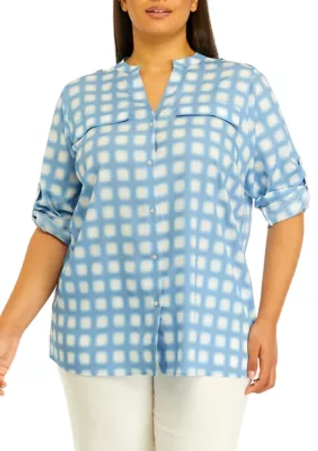 Plus Roll Tab Printed Shirt