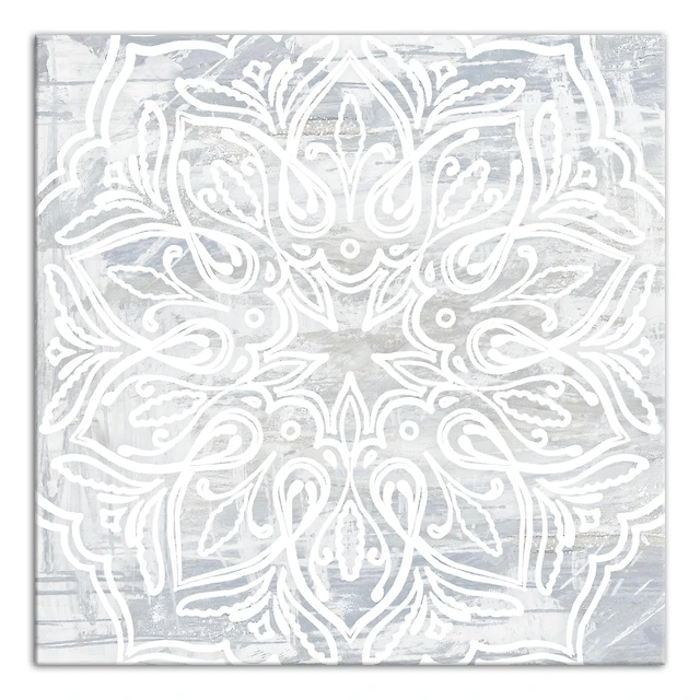 White Textured Medallion IV 16" x 16" Canvas Wall Art