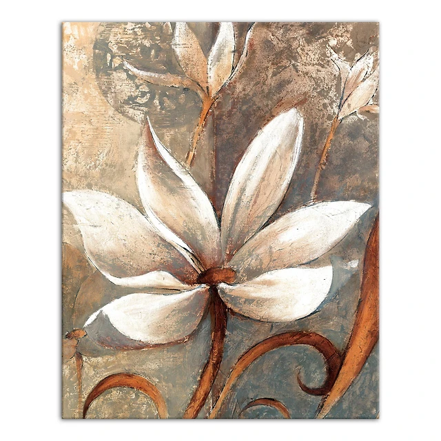 White Flowers On Neutral 16" x 20" Canvas Wall Art