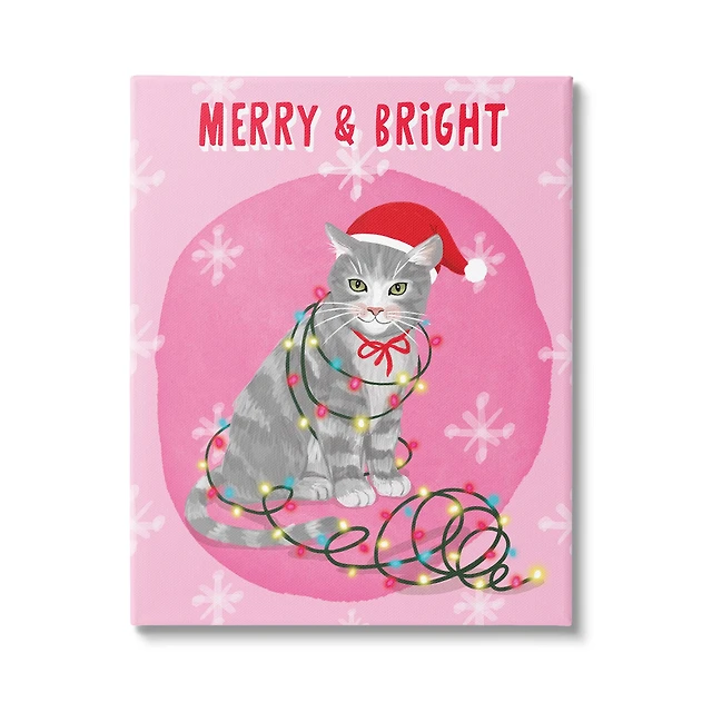 Stupell Industries Merry & Bright Christmas Cat Canvas Wall Art