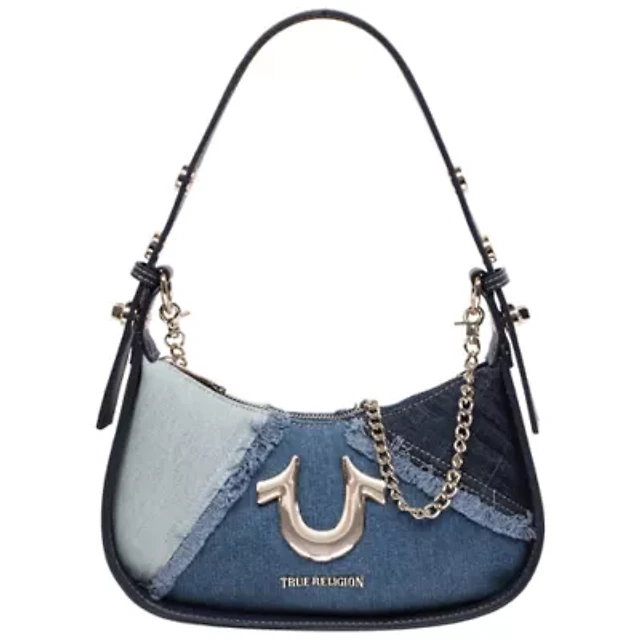 True Religion Frayed Denim Horseshoe Flap Shoulder Bag