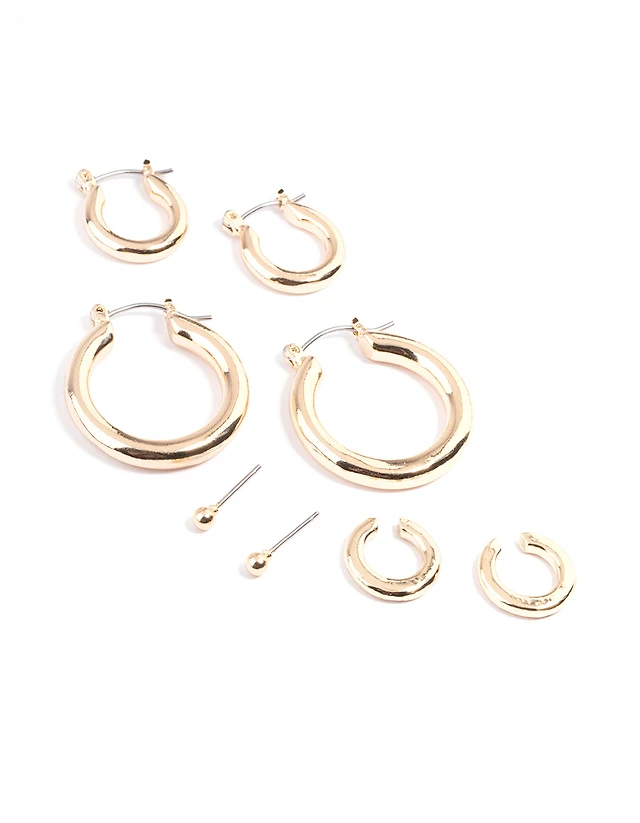 Silver Diamante & Polished Hoop Earrings 4-Pack