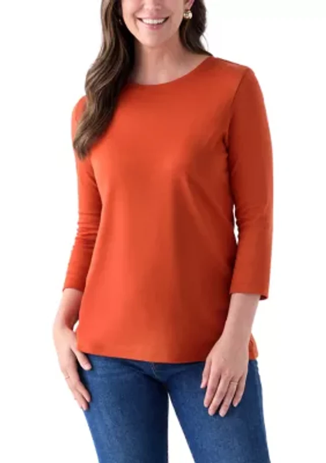 Women's 3/4 Sleeve Ruffle Neck Printed Top
