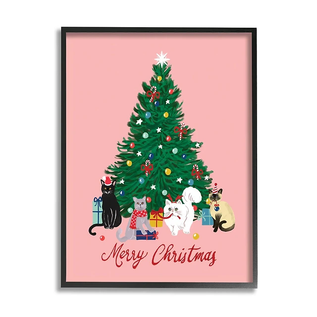 Stupell Industries Meowy Christmas Cat Tree Framed Giclee Art