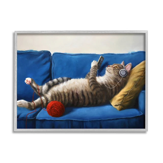 Stupell Industries Sleeping Striped Cat Minimal Relaxed Pet in Black Frame Wall Art