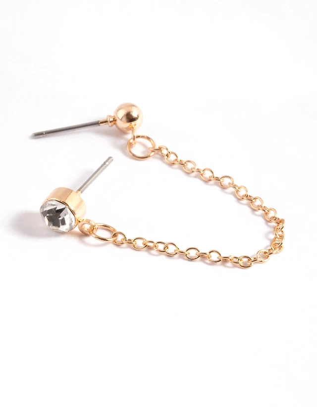 Gold Plated Cubic Zirconia Double Huggie Chain Earrings