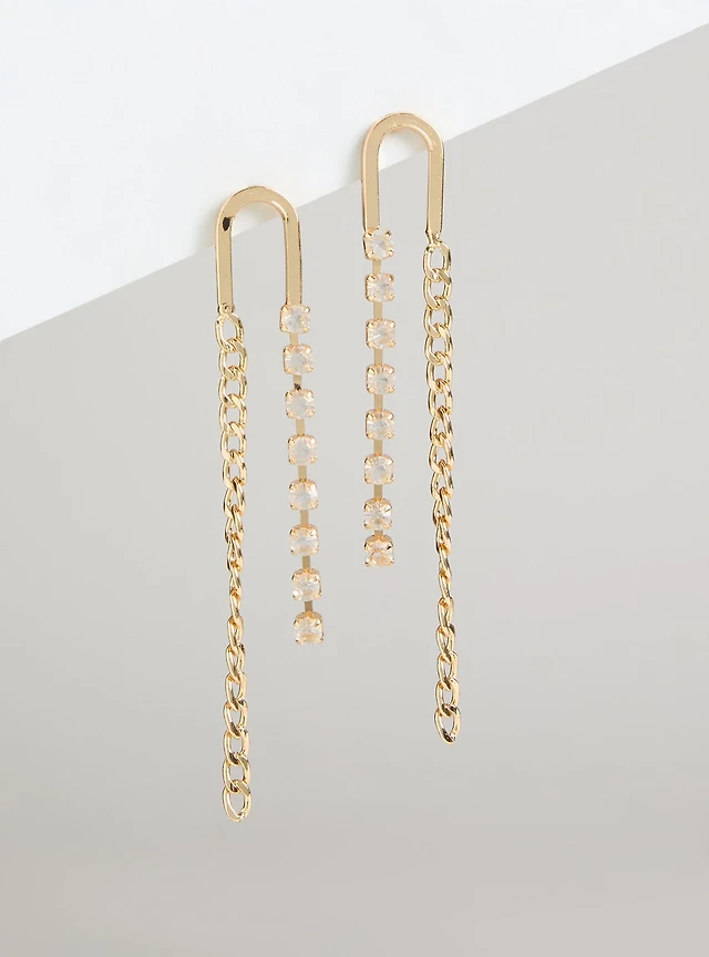 Gold Plated Cubic Zirconia Drop & Chain Earrings 2-Pack