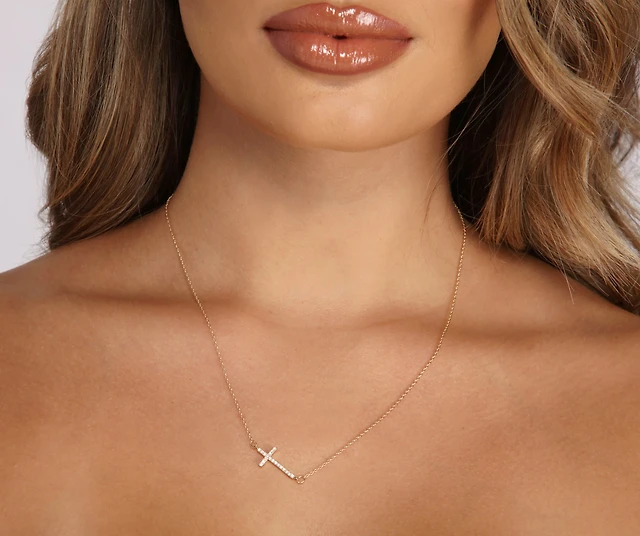 Glam Trend Gemstone Cross Chain Necklace