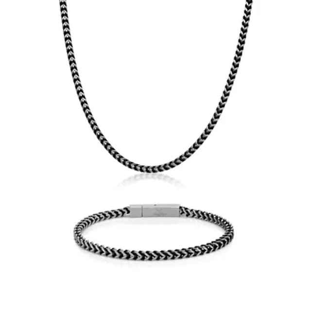 Black Ion-Plated Stainless Steel Wheat Chain Bracelet