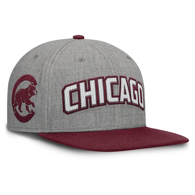 Men's Fanatics Gray/Maroon Chicago Cubs Elements Felt Chainstitch Snapback Hat