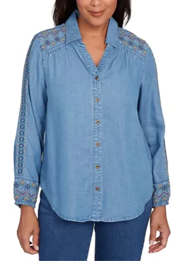 Petite Floral Embroidered Poplin Blouse