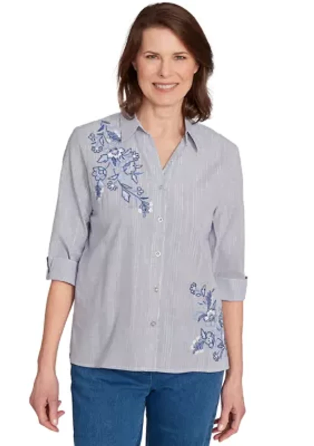 Hello Honey® Multicolor Cotton Lumbar Pillow with Embroidery and Flowers in Vase