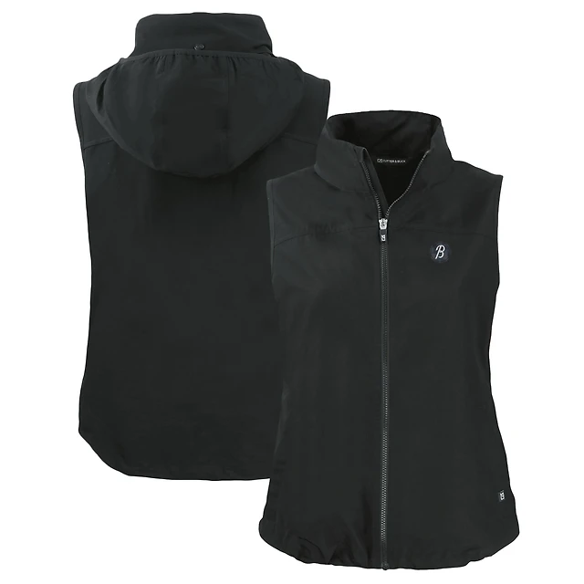 Men's Cutter & Buck Black Atlanta Braves Charter Eco Recycled Anorak Half-Zip Hoodie Jacket