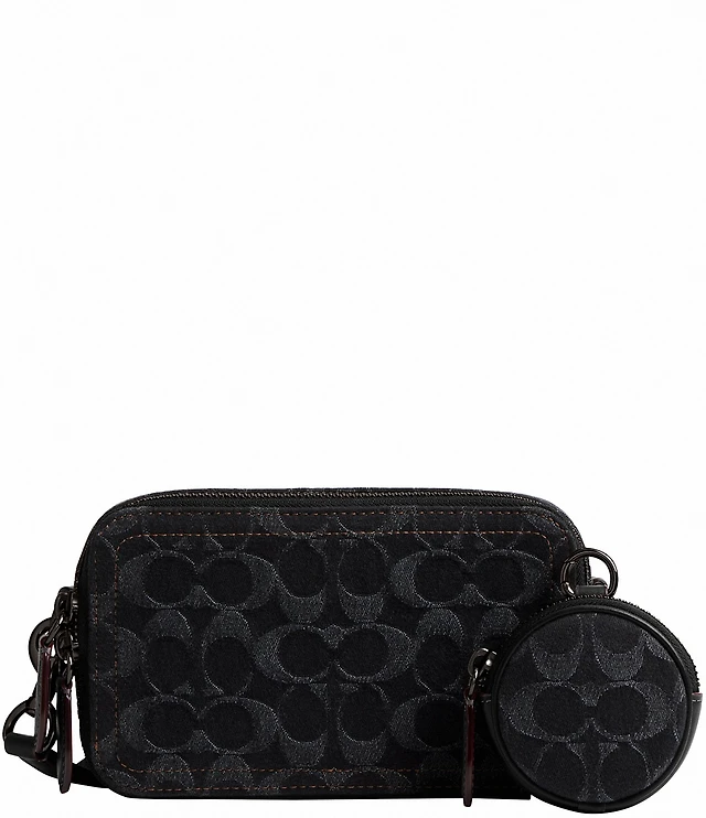 COACH Charter Slim Signature Canvas Black Denim Crossbody Bag