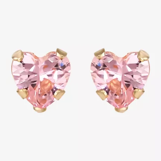 Girls Pink Cubic Zirconia Heart Earrings