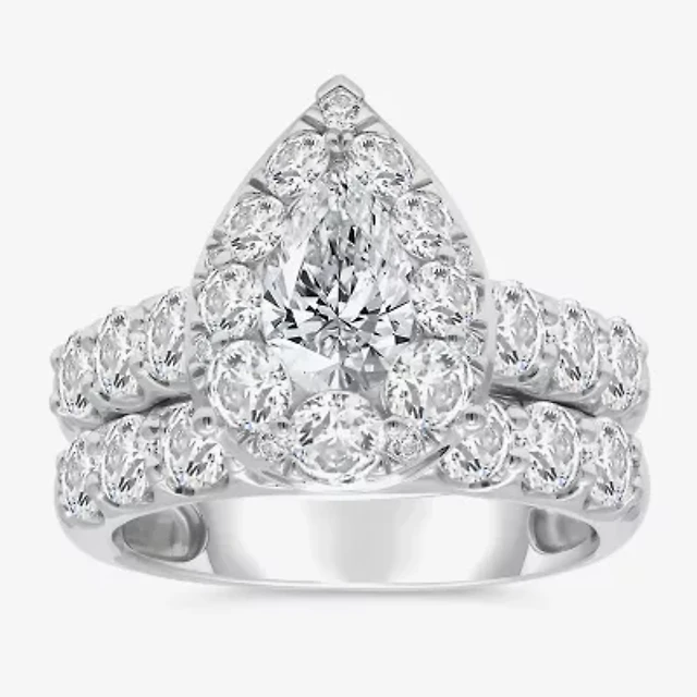 Signature By Modern Bride (G-H / Si1-Si2) Womens 1 1/3 CT. T.W. Lab Grown White Diamond 10K Gold Pear Side Stone Halo Bridal Set