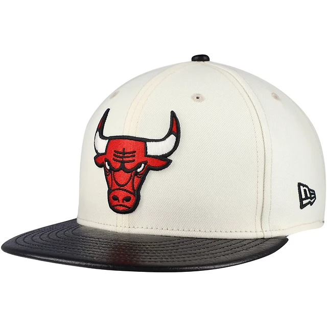 New Era Black Chicago Bulls Faux Leather Visor Two-Tone 59FIFTY Fitted Hat