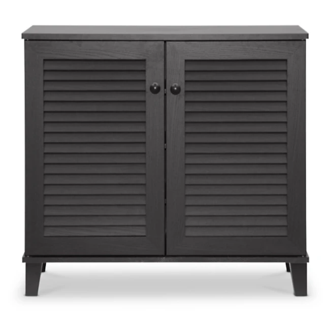 Black Slatted Sliding Door Cabinet