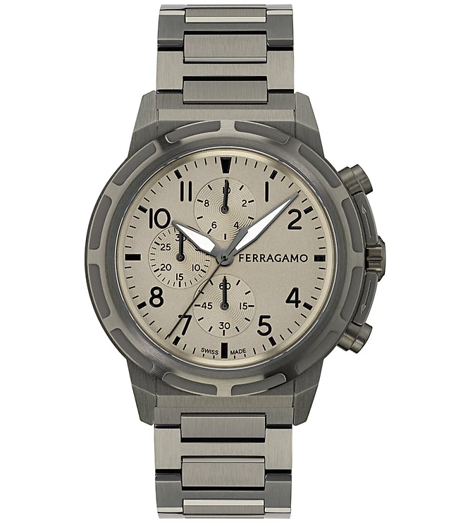 Salvatore Ferragamo Men's Ferragamo Sport Chronograph Gunmetal Stainless Steel Bracelet Watch