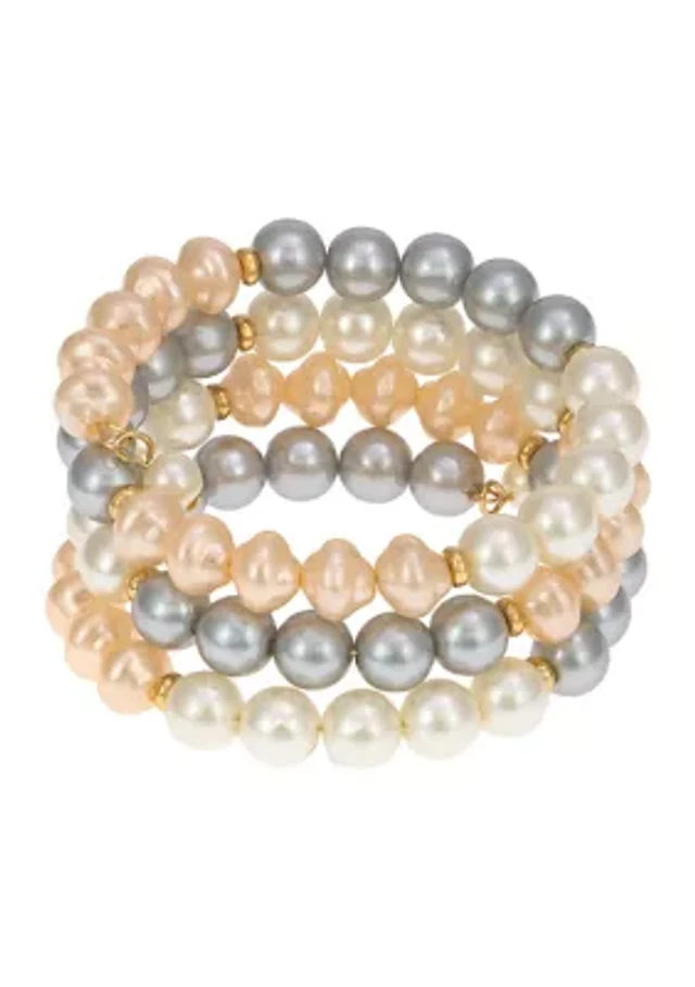 Gold Black Heart Charm Stone Bracelets 2-Pack